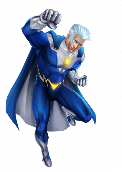 Atmos is a strong, caring superhero with great morals. He is also the fastest flying hero of all. He turns metal into rust and creates ozone-like shields of protection. He can breathe underwater and can give fire heroes more power. He can also help other heroes breathe underwater too!
